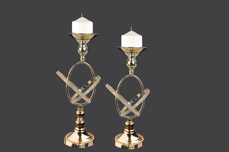 Μεταλλικό κηροπήγιο 52cm-45cm  σε χρυσή απόχρωση με γυάλινες λεπτομέρειες,