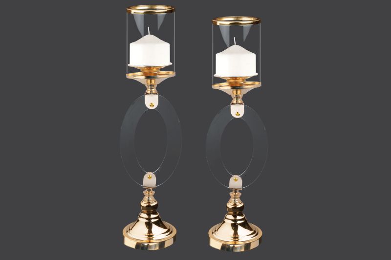 Μεταλλικό κηροπήγιο 56cm-50cm σε χρυσή απόχρωση με plexy glass λεπτομέρειες.
