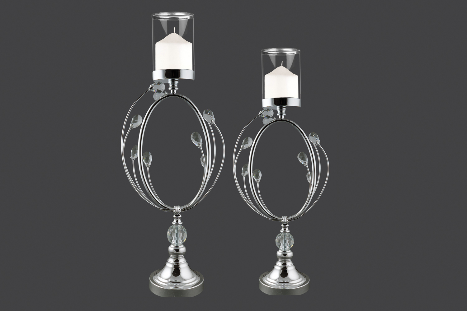 Μεταλλικό κηροπήγιο σε ασημί απόχρωση με γυάλινες λεπτομέρειες,