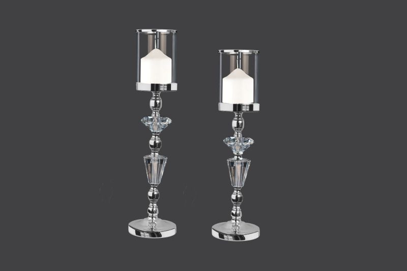 Μεταλλικό κηροπήγιο 50cm-46cm  σε χρυσή απόχρωση με γυάλινες λεπτομέρειες,